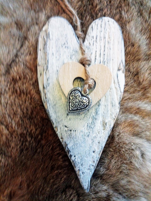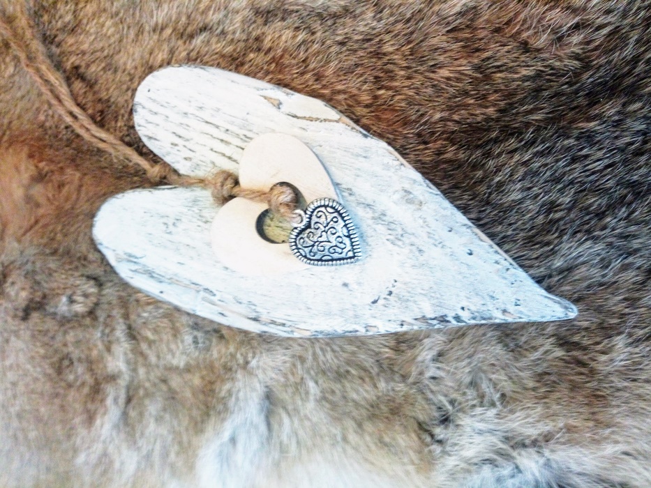 Hartje van pallethout. Vervolgens bewerkt en voorzien van sfeerhanger.