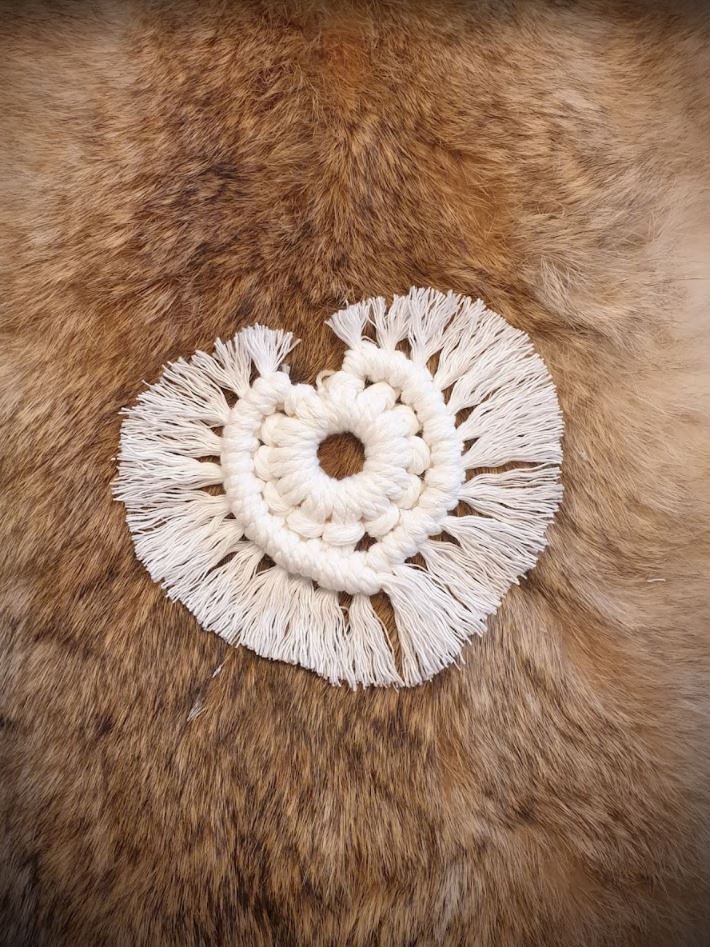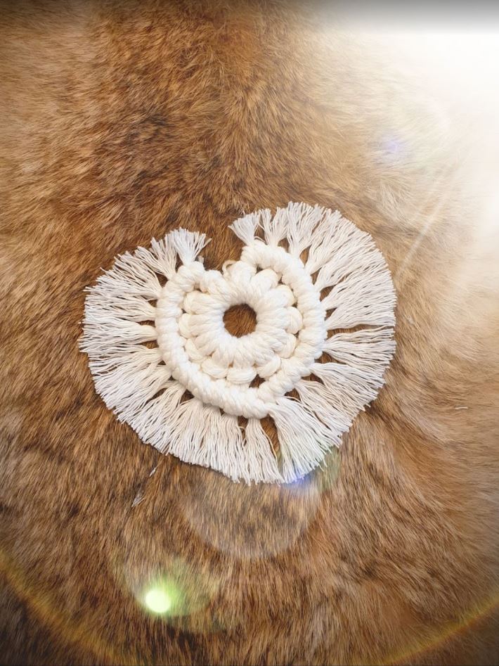 Macramé “Kerst Hart” gemaakt van 3mm dik katoenen garen.