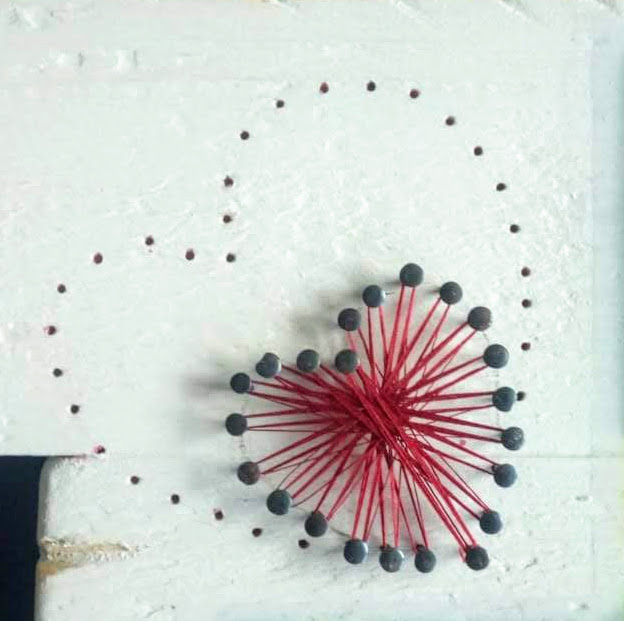 Een hartje van string-art toegevoegd met rood draad.